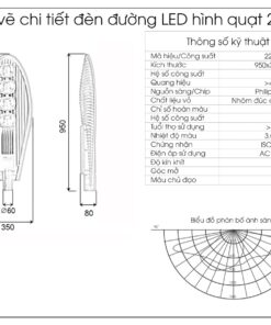Màu ánh sáng Trắng, vàng, trung tính Hiệu suất phát quang 110-120 lm/W Chỉ số hoàn màu CRI > 75Ra Hệ số công suất PF> 0.9 Cấp bảo vệ IP65 Góc chiếu 120 độ Kích thước 950*330*80mm Cân nặng vỏ đèn 4.7kg Thân đèn, tản nhiệt đèn Hợp kim nhôm cao cấp Tuổi thọ chiếu sáng 50.000h Bảo hành 2.5 năm